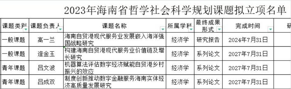 公司吕成双老师获得2023年海南省哲学社会科学规划课题立项,制度创新推动数字金融服务海南实体经济高质量发展研究。