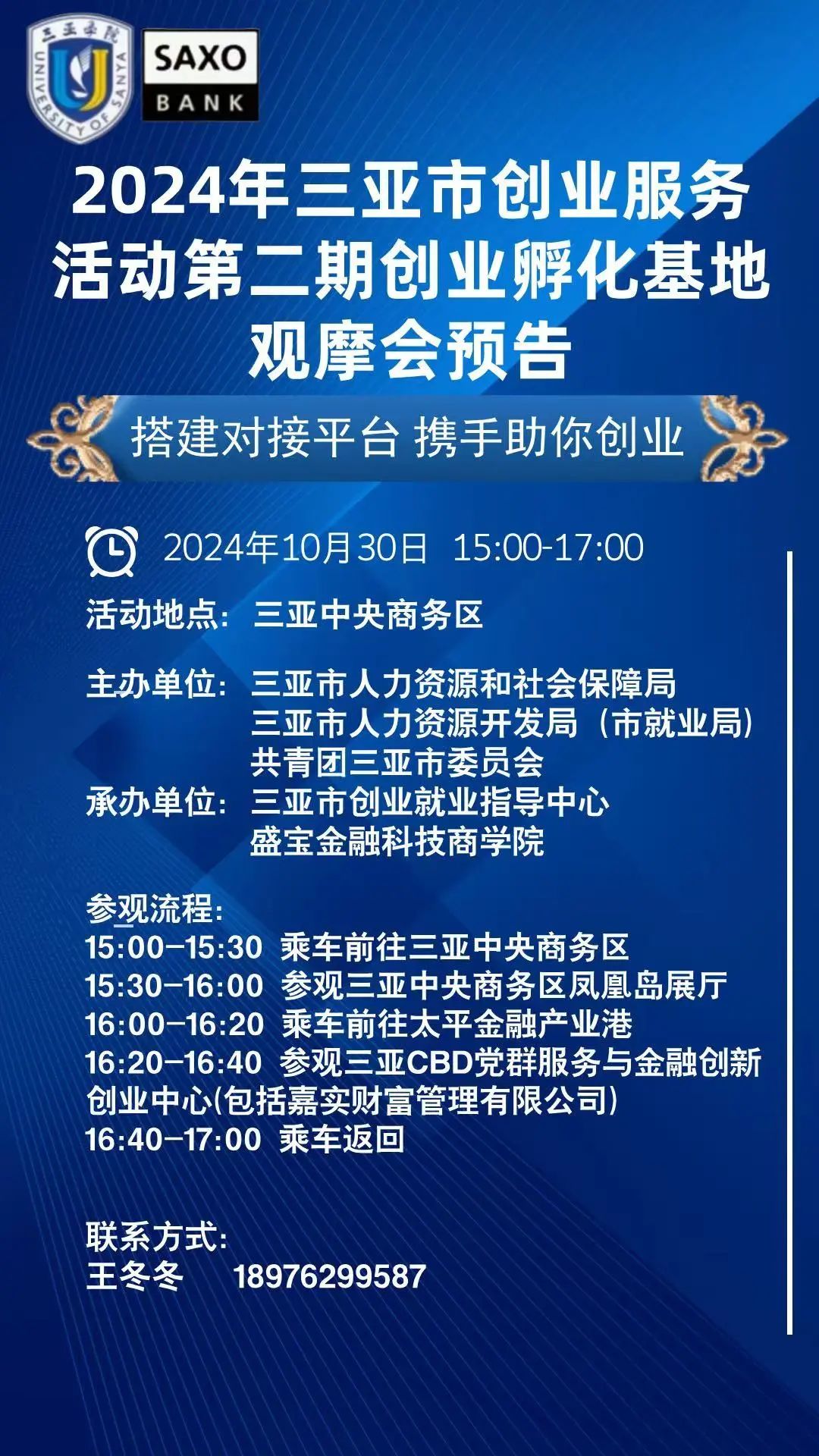 2024年三亚市创业服务活动第二期创业孵化基地观摩会预告