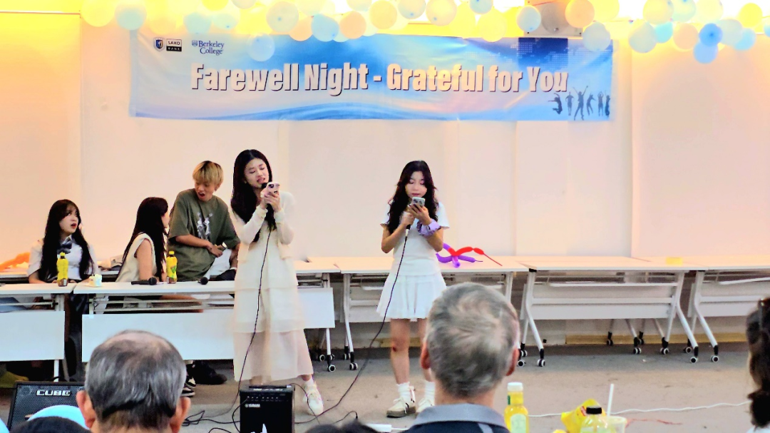 晚会上,同学们通过一系列精彩的才艺表演,深情表达了对外教们的感激与不舍。四人组合演绎的《平凡之路》唱出了大家的心声;而《Good time》的合唱则将现场气氛推向高潮,悠扬歌声中充满了对美好回忆的珍惜。