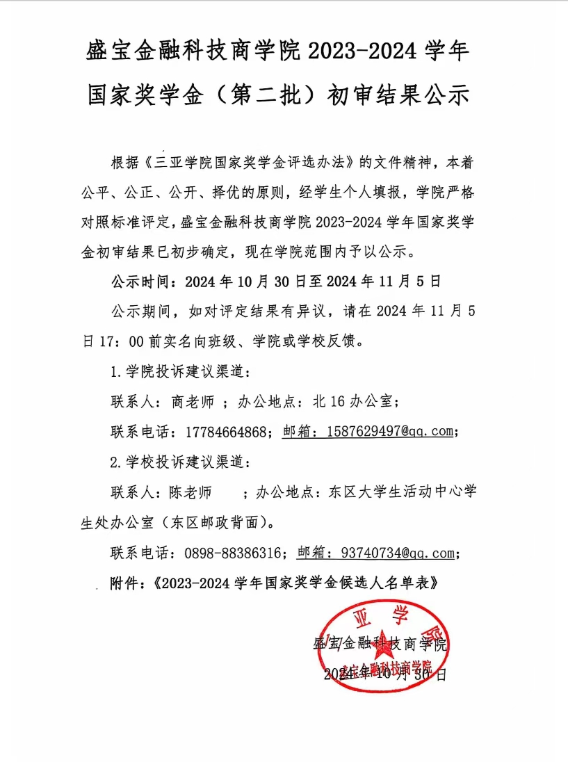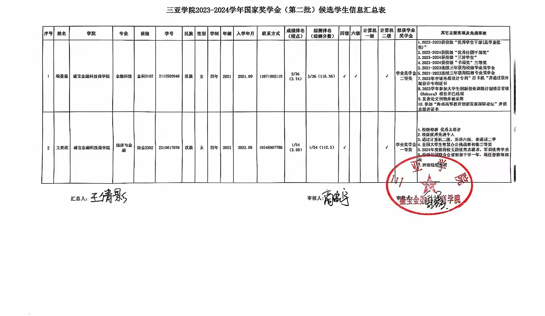 国家奖学金 (第二批)初审结果公示