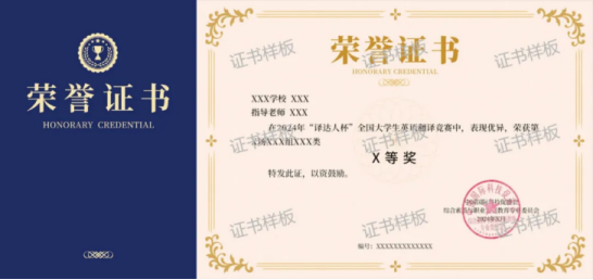 获奖率:竞赛设全国一、二、三等奖及优秀奖。一等奖为参赛人数前5%;二等奖为参赛人数前6%-20%;三等奖为参数人数前21%-50%;优秀奖若干。每场英译汉类和汉译英类排名前3名依次奖励300元、200元、100元奖金,及译达人杯奖杯。