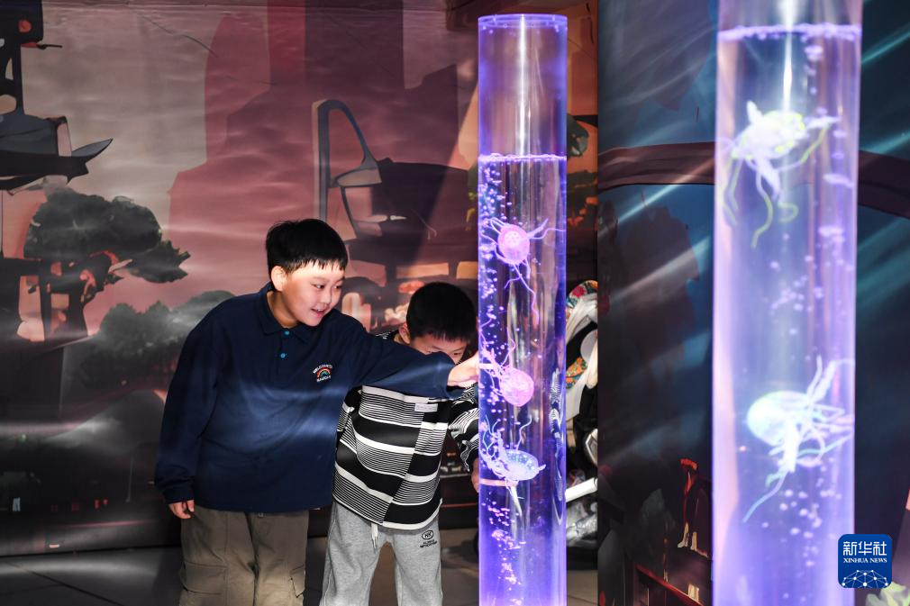 2024年10月3日,小朋友在重庆科技馆参观、体验。图片来源:新华社