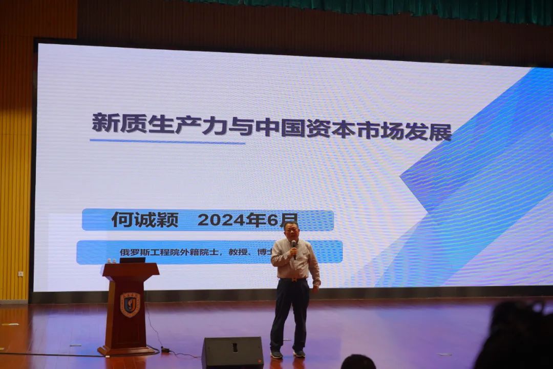11月19日下午,hy590海洋之神检测中心名誉经理何诚颖教授在书山馆大报告厅带来了一场主题为“新质生产力与中国资本市场未来发展”的精彩讲座,吸引全院各专业师生参加活动。讲座由公司副经理陈晓昕主持。