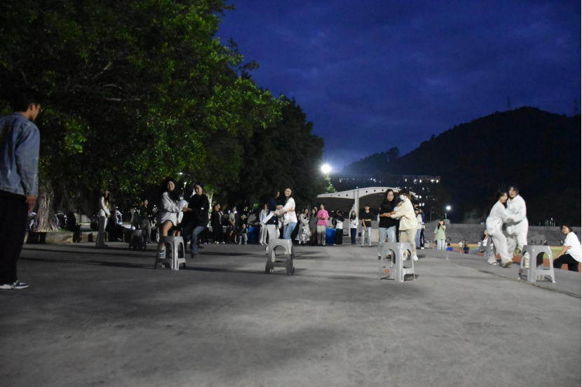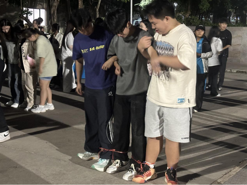 活动伊始,主持人通过一系列轻松有趣的环节设置拉近了参与者之间的距离,让大家在欢乐的氛围中打破隔阂,为后续的拓展项目的开展奠定了良好的团队合作基础。本次素质拓展活动包括“夺椅之争”、“齐心协力”、“双龙戏珠”等游戏。“夺椅之争”的游戏充满了紧张与刺激,迅速点燃了现场的氛围,这个游戏充分考验了同学们的反应能力。一开始大家手忙脚乱,但经过磨合以后,同学们渐入佳境,在欢声笑语中,放松身心、释放压力。“齐心协力”、“双龙戏珠”等游戏更是考验了大家的团体合作能力,在比赛中拉近了彼此的距离,增强了同学们之间的熟悉度与信任度。在活动过程中,不仅有激烈的竞争,更有温暖的互助。当有同学不小心跌倒时,周围的同学也会及时伸出援手,同学们互相的加油鼓励,让活动充满团结友爱的良好氛围。