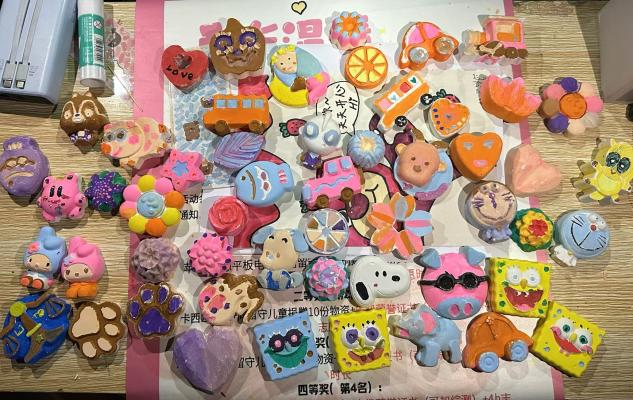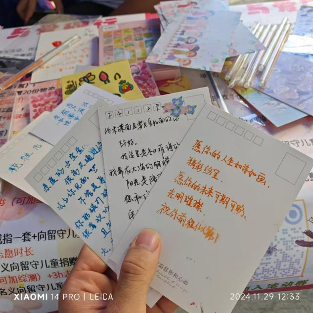 活动期间,手工制作环节成为了现场最亮丽的风景线。志愿者们利用树叶、花瓣、彩笔等多样化的材料,充分发挥创意,精心制作出一件件富有爱心的手工制品,如石膏娃娃、树叶创意作品、瓶花艺术装饰画和明信片等。这些作品不仅展示了志愿者们的巧思与才艺,更承载着他们对山区留守儿童的深情厚意。