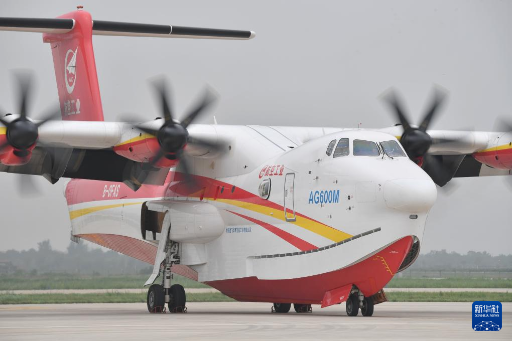 AG600飞机在陕西蒲城国家民机试飞基地进行发动机试车(7月17日摄)。图片来源:新华网