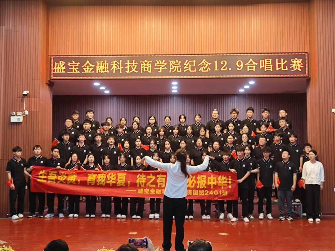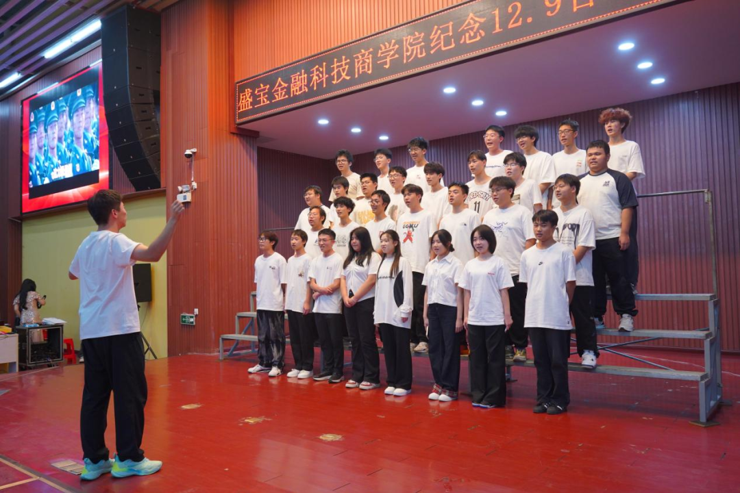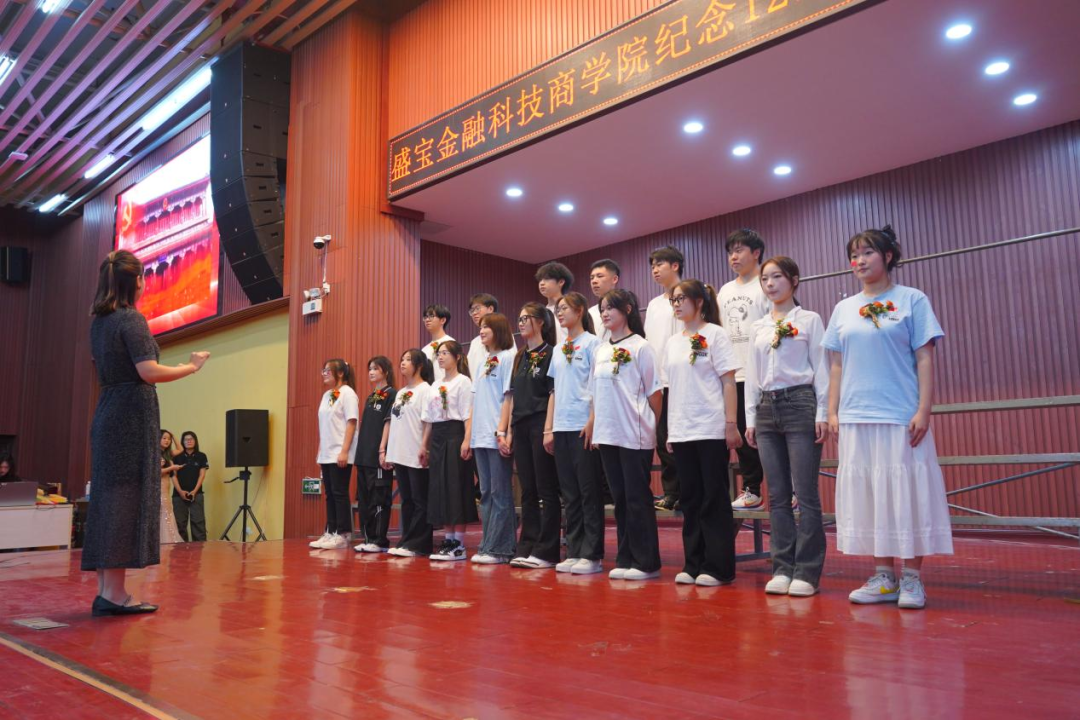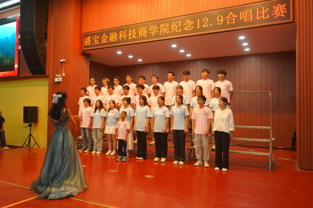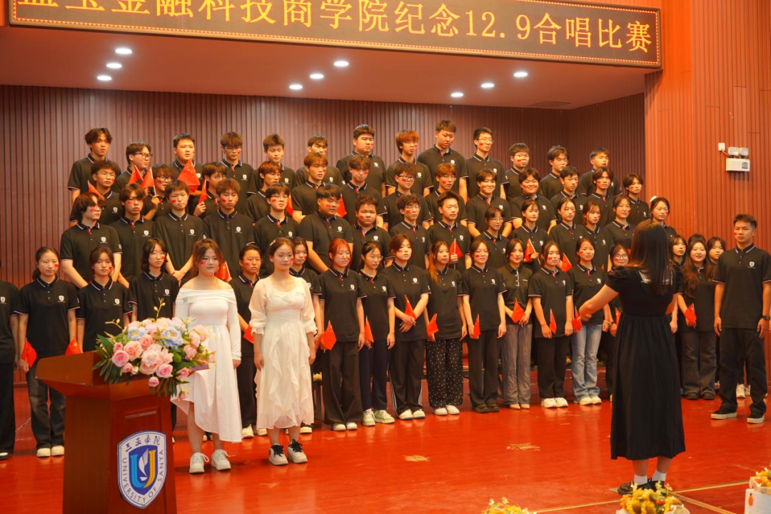 经金 2401 班以《我爱你中国》向祖国告白。“我爱你中国,亲爱的母亲,我为你流泪,为你自豪。”洪亮且具感染力的歌声,回荡礼堂,动人至深。
