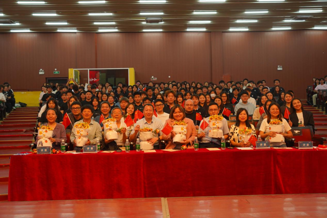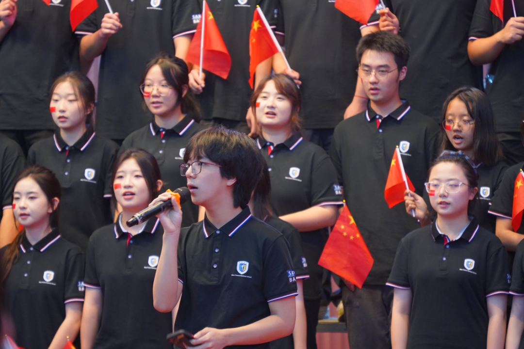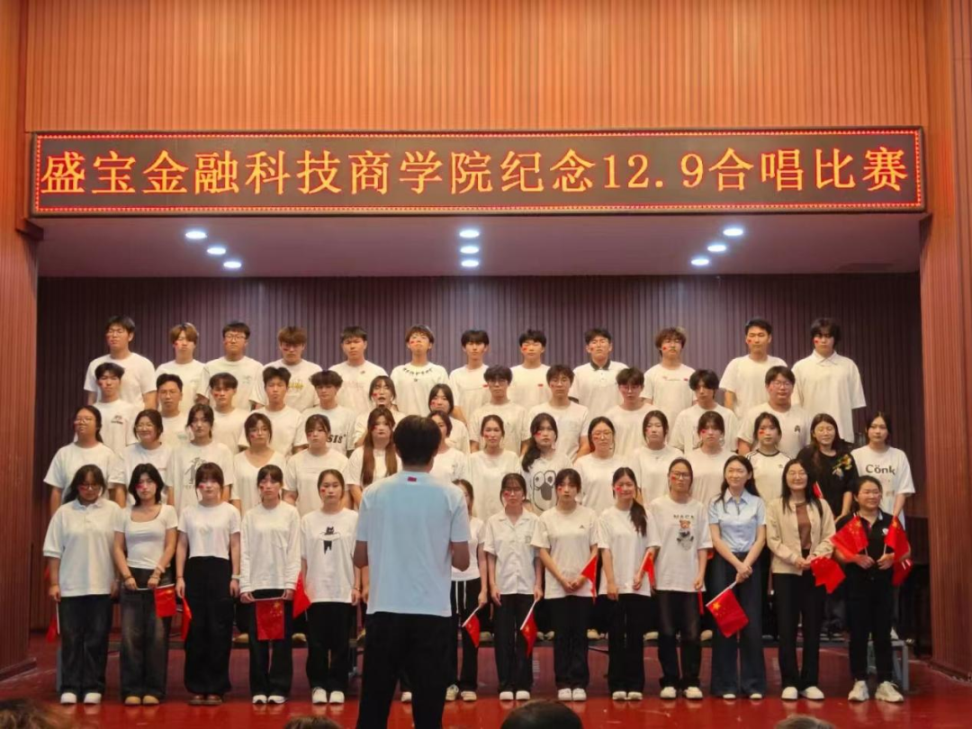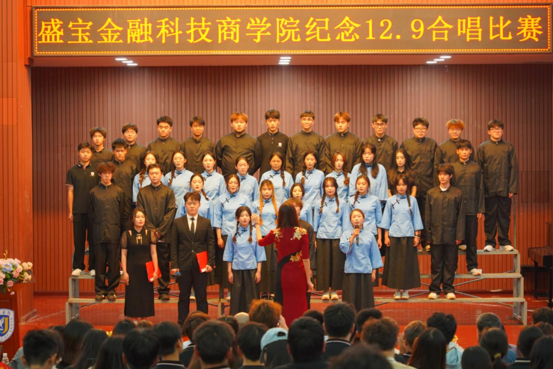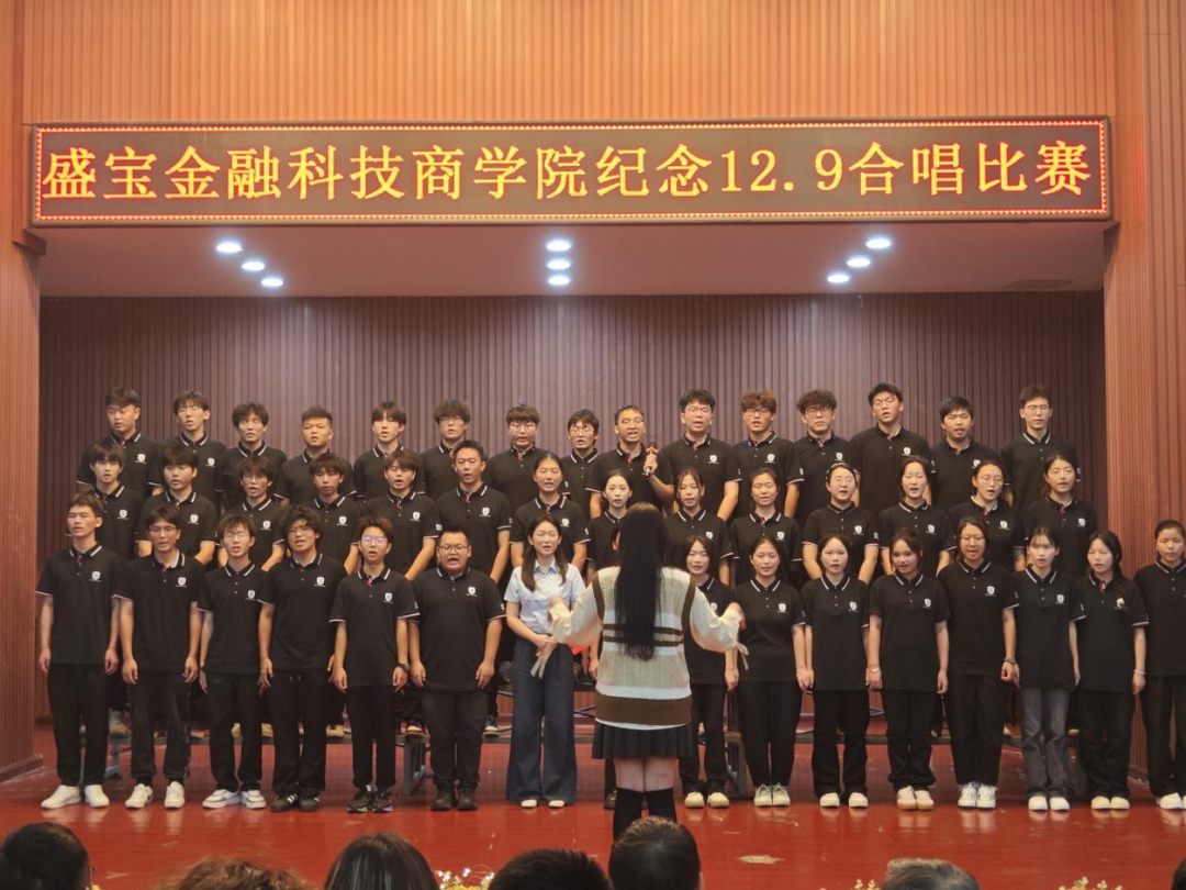 经金 2401 班以《我爱你中国》向祖国告白。“我爱你中国,亲爱的母亲,我为你流泪,为你自豪。”洪亮且具感染力的歌声,回荡礼堂,动人至深。