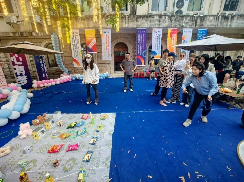 员工代表精心准备了形式多样、内容丰富的文艺演出。同学们用中英文双语演绎经典节目,通过悠扬的旋律和真挚的歌词,将对师长的不舍之情与美好祝愿娓娓道来。外教们全程专注欣赏,不时报以热烈掌声,现场洋溢着温馨感人的氛围。在互动交流环节,师生们共同参与了精心设计的文化体验活动。"踩气球"游戏中,中外师生混合组队,在欢快的竞技中增进默契;"套圈赢奖"环节则通过轻松有趣的互动形式,让外教们充分感受到活动的欢乐氛围。中外师生在轻松愉快的互动中进一步加深了理解,更是促进跨文化交流的生动实践。