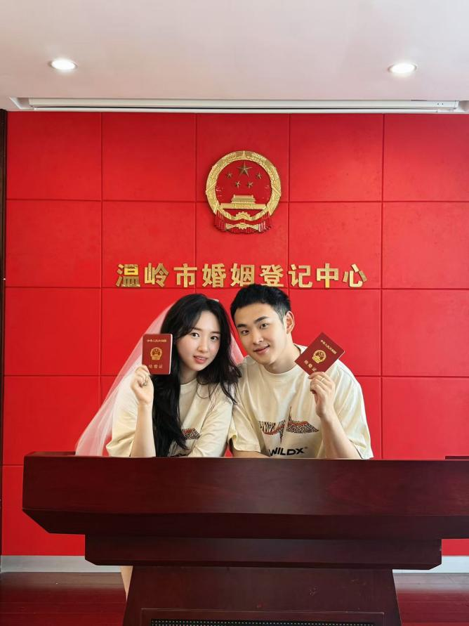 2025年5月20日,在王宇欣毕业前,两人手牵手走进温岭市婚姻登记中心。“领证的那一刻,我感到无比幸福。我们从校园走来,经历了那么多,最终走到了一起。”陈玄毅感慨道。