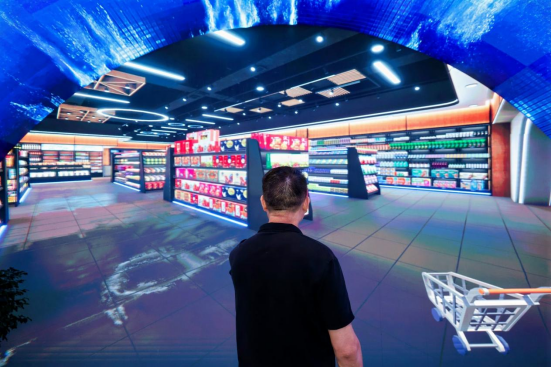 第三届全球数字贸易博览会人工智能展区,观众佩戴MR眼镜体验线上逛超市(数贸会组委会供图)。图片来源:新华网