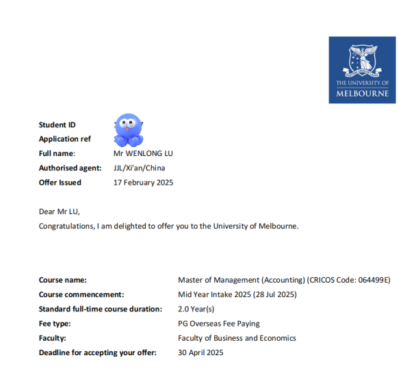 拿到墨尔本大学的录取通知书时,内心是激动与责任并存的。这份offer不仅是对过往学术努力的认可,更是通向国际化教育的重要一步。回想起本科期间从最初对商科的懵懂探索,到逐步建立知识框架、参与实践项目,每一步都为此奠定了基础。收到邮件的那一刻,仿佛看到未来在墨尔本校园里与全球学子并肩。