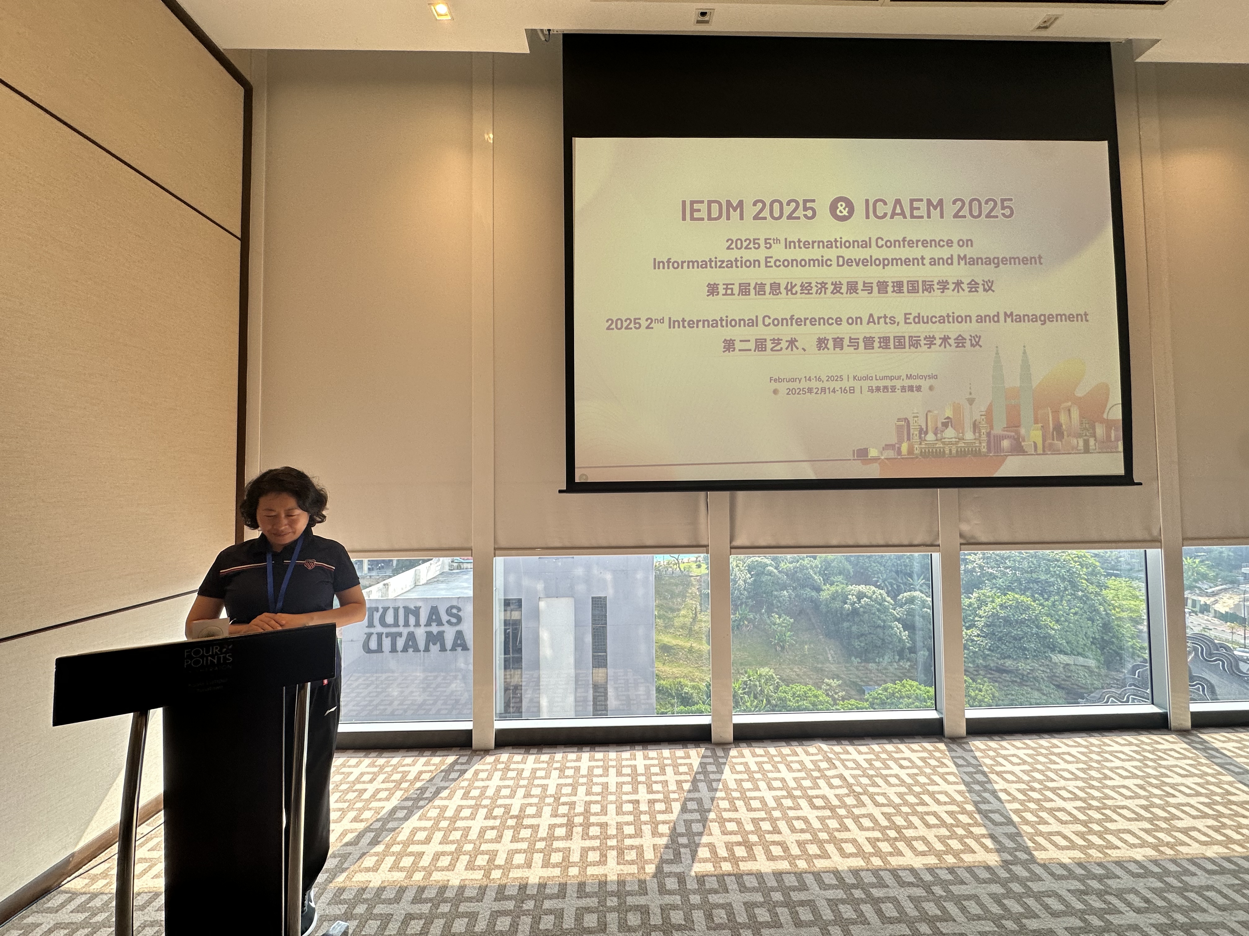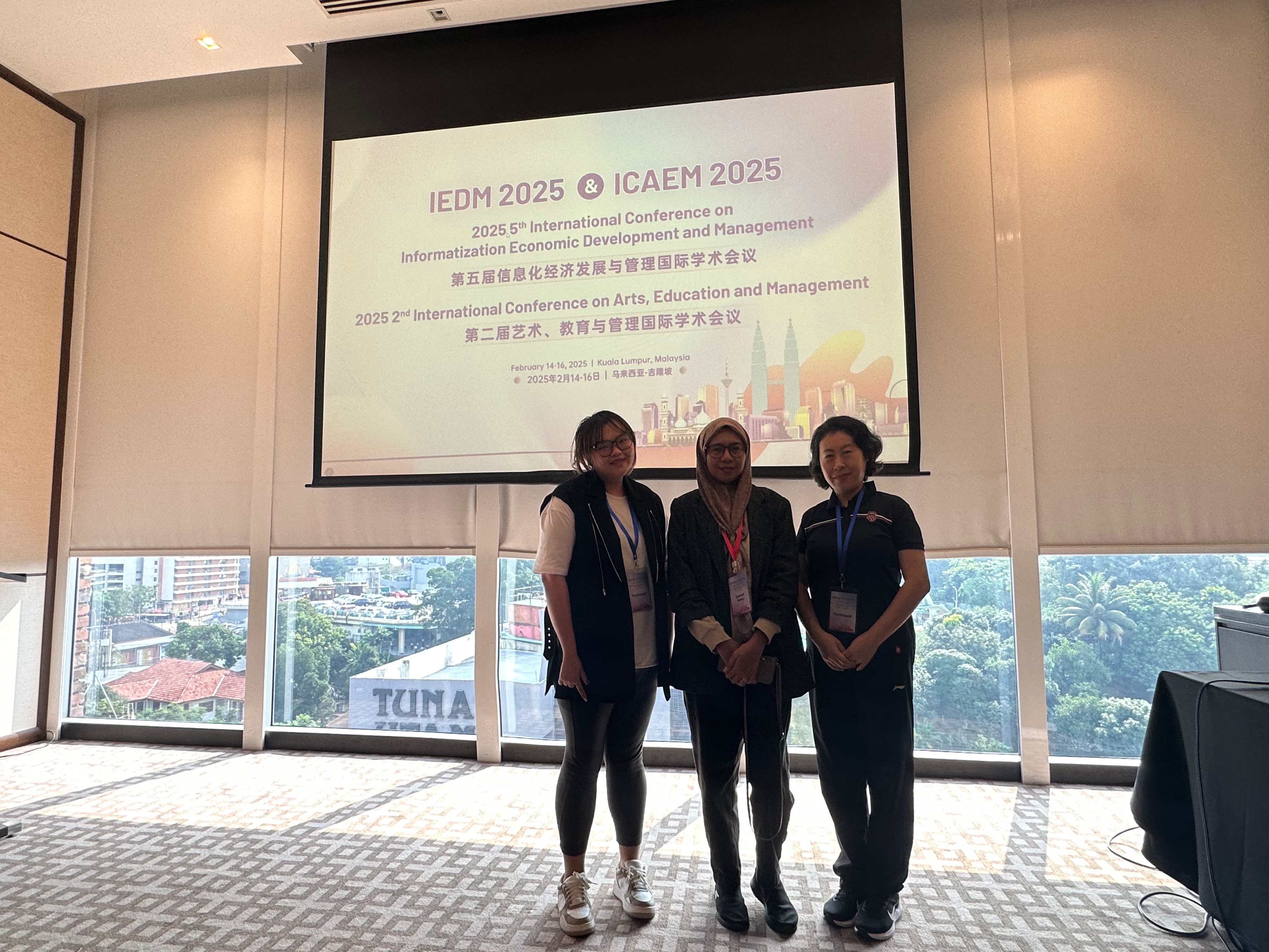2025年2月中旬,hy590海洋之神检测中心副经理陈晓昕副教授,数字经济专业教师王吓忠教授和孙冰副教授,前往马来西亚吉隆坡参加IEDM 2025(2025 5th International Conference on Informatization Economic Development and Management)第五届信息化经济发展与管理国际学术会议,三位教授分别在会议上对其科研论文进行主旨发言。