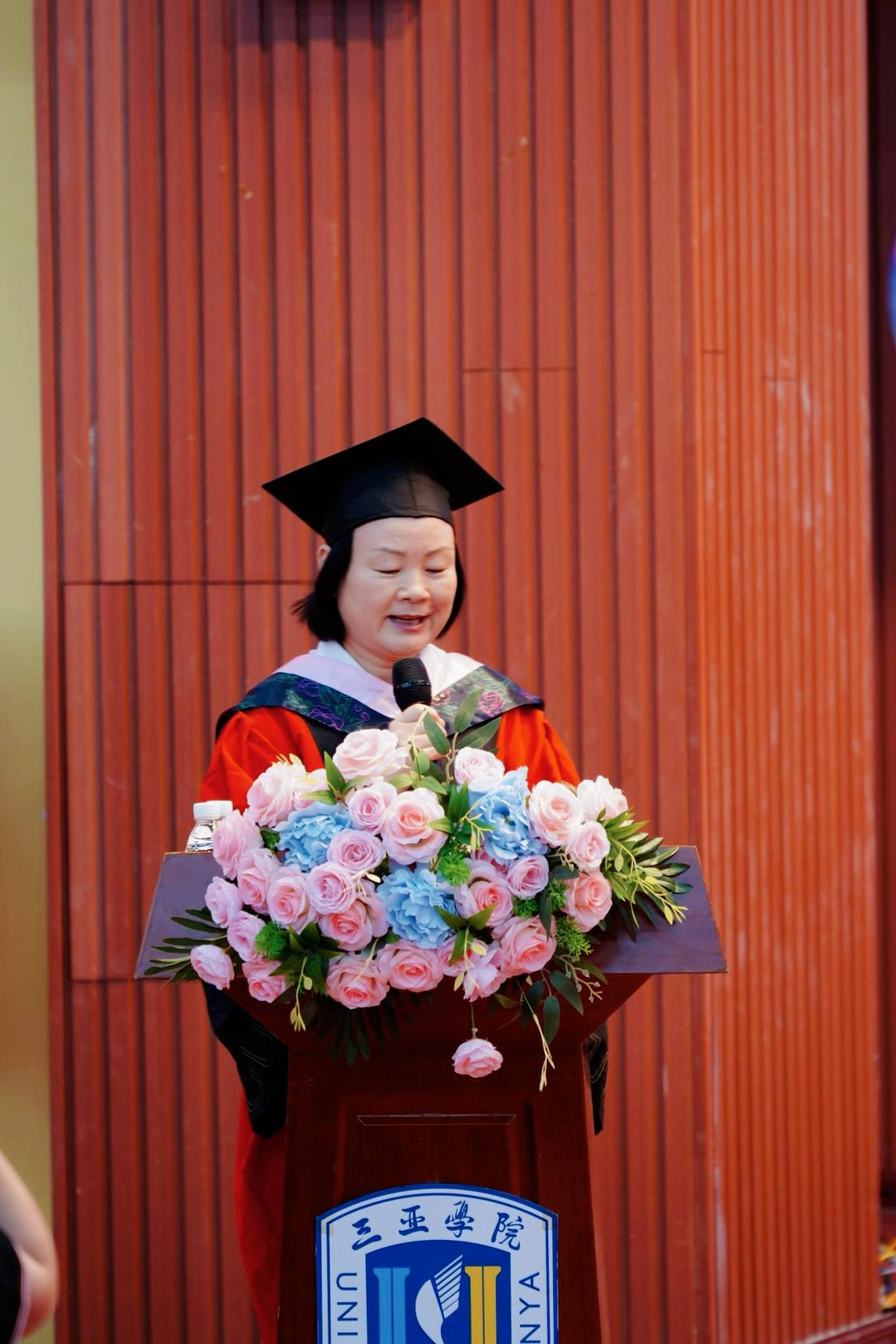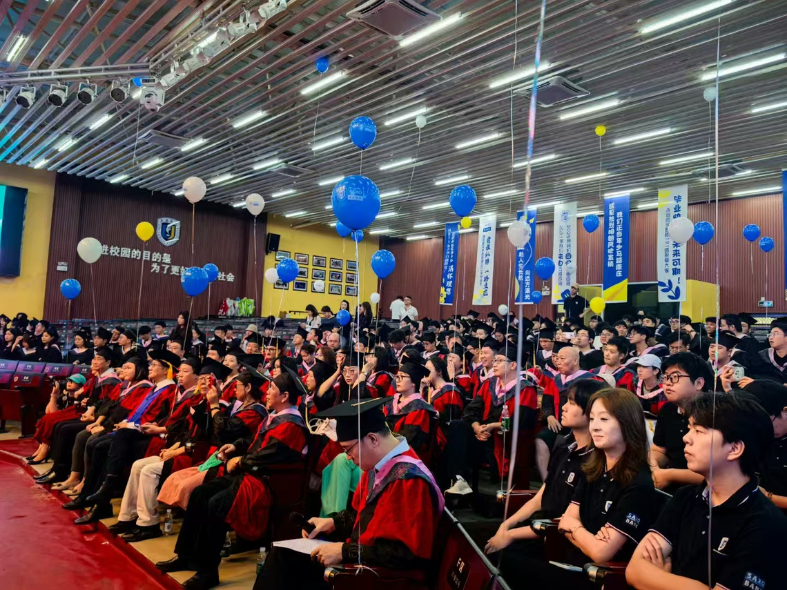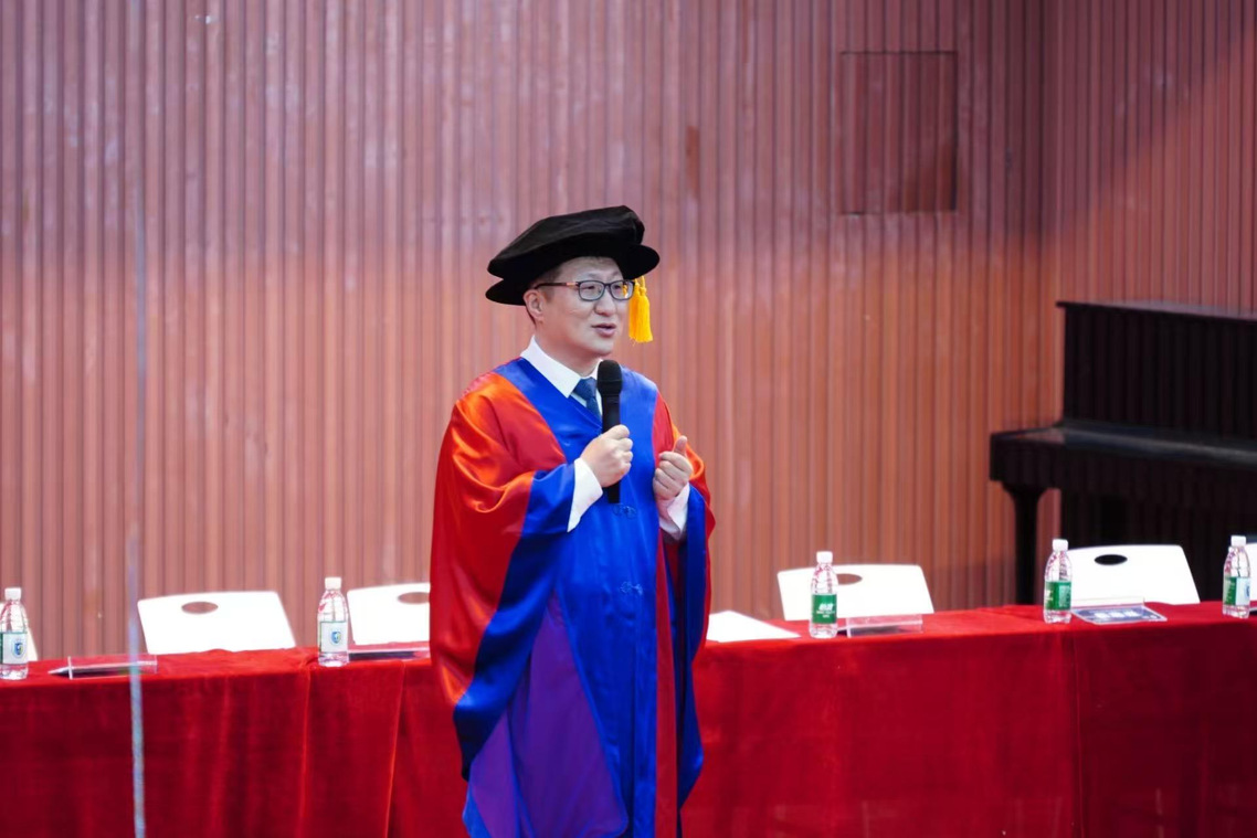 副董事长柴勇教授在仪式上向2025届毕业生表示热烈祝贺并送上“看大势、入窄门、行远路、爱自己”临别寄语。“看大势”。是希望毕业生们以开阔的视野洞察时代发展潮流,在AI科技变革、社会进步的浪潮中找准自身定位,将个人发展与国家命运紧密相连;“入窄门” 则是鼓励大家深耕专业领域,在看似艰难却充满潜力的道路上沉淀积累,锻造核心竞争力;“行远路” 意味着要树立远大目标,保持坚韧不拔的毅力,不惧前路坎坷,在持续奋斗中不断坚持和积累以实现人生价值;爱自己”是提醒毕业生们在拼搏进取的同时,保持对生活的热爱,爱自己、爱家人,以积极乐观的态度拥抱未来。柴勇以诗人叶芝的诗句“将玫瑰藏于身后,风起花落,从此鲜花赠自己,纵马踏花向自由”赠予全体毕业生,为即将远行的学子送上最有力的祝福。