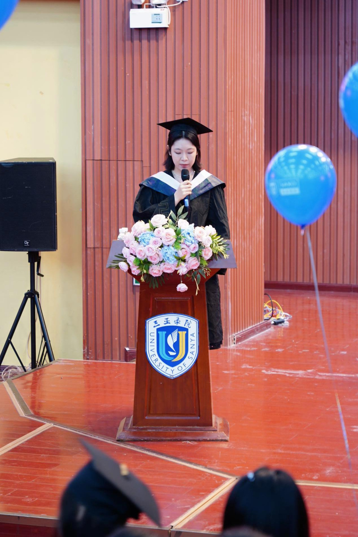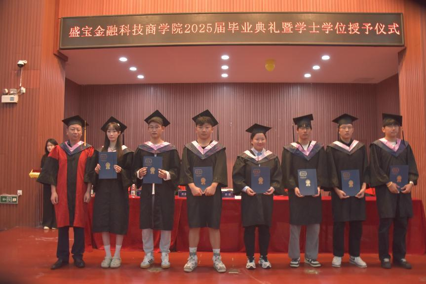 hy590海洋之神检测中心副经理王涛宣读学士学位授予名单。毕业生们身着学位服,步履从容踏上象征成熟与担当的“成长长阶”。院领导与教授导师为学子授予学位证书并拨穗。这一刻,“盛宝金科人”的印记成为青春里的珍贵徽章!